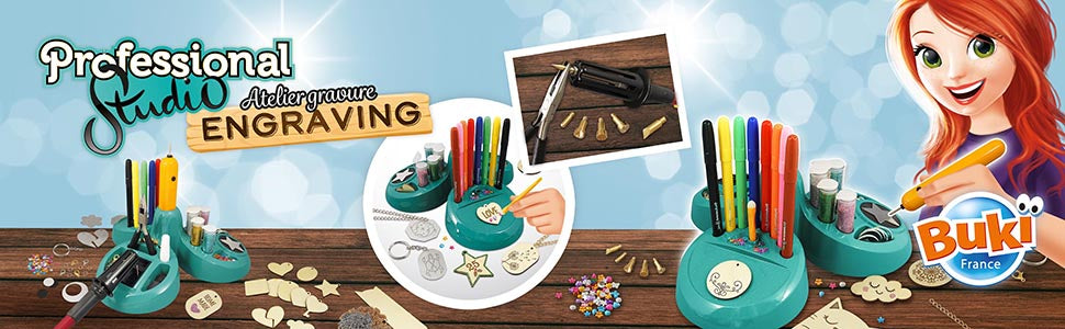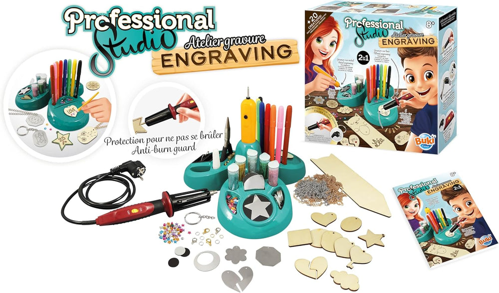 Vytvářejte a personalizujte originální klíčenky, náhrdelníky, magnety a záložky! Tato bezpečná kreativní sada umožňuje gravírování na dřevo i kov a je ideální pro děti od 8 let i dospělé, kteří se chtějí pustit do dekorování a tvorby jedinečných doplňků.