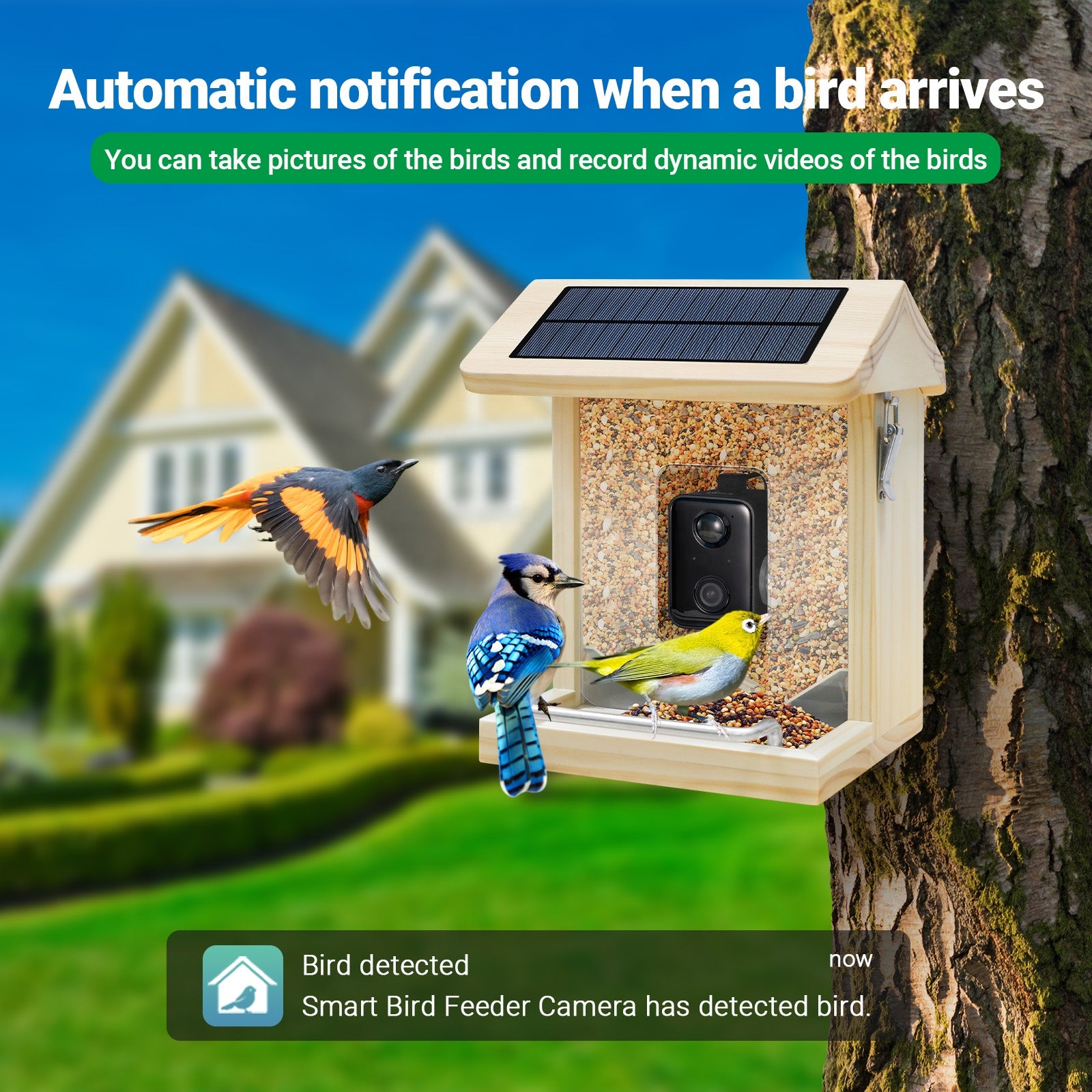 Objevte kouzlo přírody zblízka díky chytrému krmítku od výrobce Nanxin. Toto elegantní dřevěné krmítko s vestavěnou HD kamerou a solárním napájením vám umožní sledovat, fotografovat i nahrávat návštěvy ptáků ve vašem okolí – přímo z pohodlí domova.