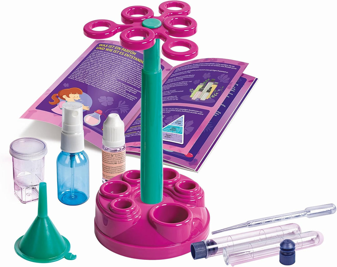 Sada obsahuje vůně, rozprašovač, odměrku, trychtýř, pipetu, míchátko a podrobné instrukce (anglický jazyk není zaručen). Díky tomu mohou děti bezpečně a samostatně experimentovat a vytvářet vlastní vonné kompozice.
