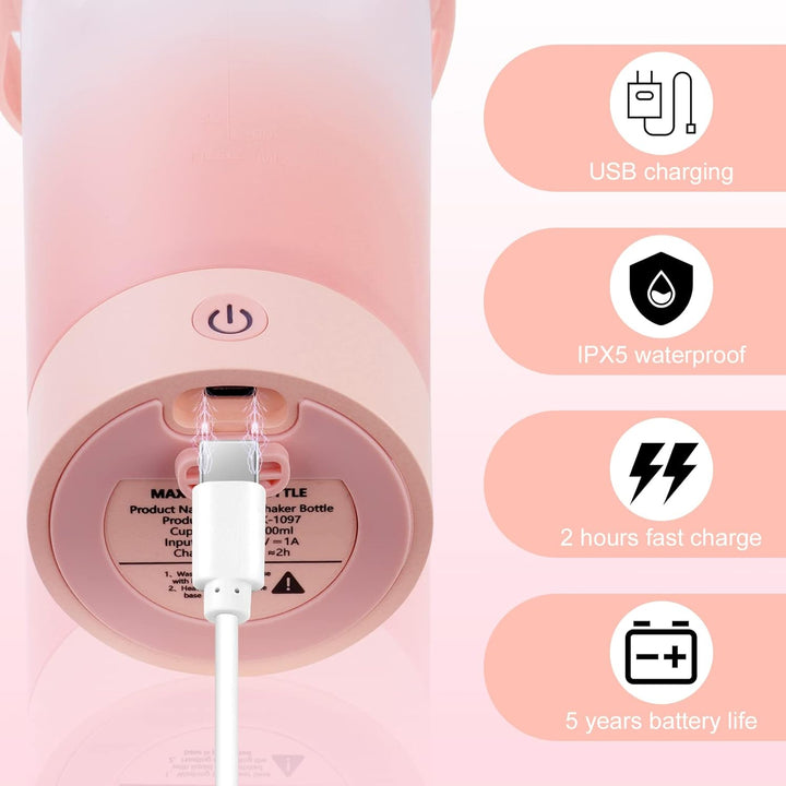 Flintronic Přenosný elektrický šejkr na protein 800 ml, Růžová