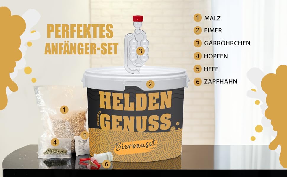 Zažijte pravé pivovarnické dobrodružství se sadou Heldengenuss. Tento kompletní domácí pivovar vám umožní uvařit si až 5 litrů lahodného ležáku Pils přímo ve vlastní kuchyni. Nejedná se o obyčejnou instantní směs – s touto sadou projdete opravdovým procesem vaření piva, včetně kvašení.
