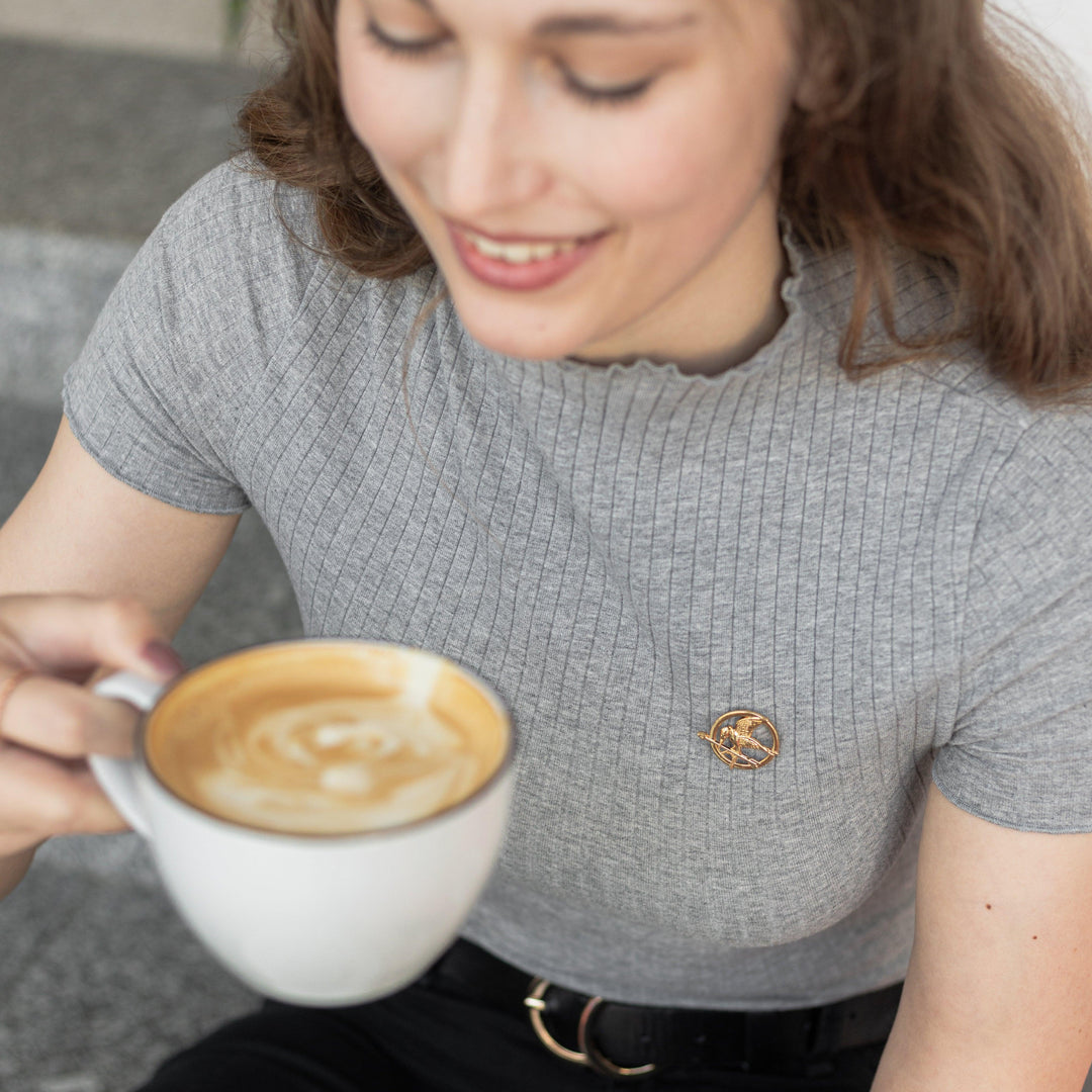 IKEN Mockingjay – brož Reprodrozd, zlatá