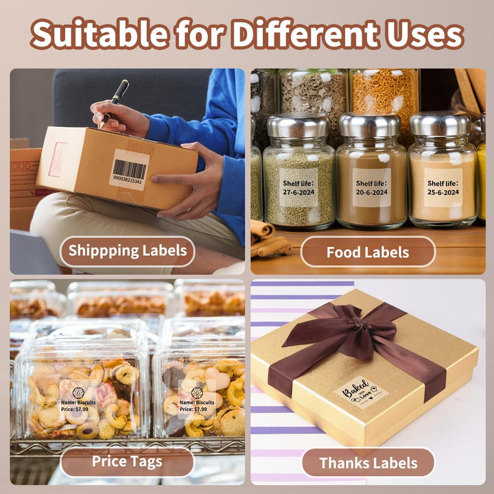 Vhodné pro popisky produktů, cenovky, štítky na balíky, rozlišování šuplíků, sklenic nebo zásobníků. Výborné i pro organizaci domácnosti či kanceláře.