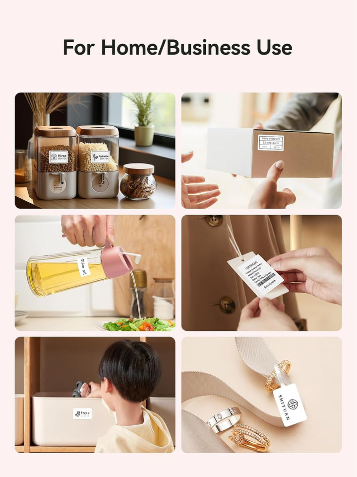 Tiskárna umožňuje tisk štítků v rozmezí šířek od 20 do 50 mm. Tiskne text, obrázky, QR kódy a čárové kódy, což ji činí vhodnou pro produktové, adresní, cenové, ingredienční či šperkové štítky.