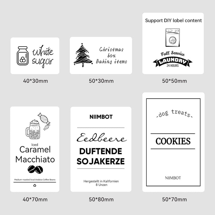 Samolepicí etiketový papír Niimbot je vyroben z vysoce kvalitního materiálu, který je voděodolný, olejotěsný, mrazuvzdorný a odolný vůči poškození, jako je protržení či poškrábání. Díky technologii termálního tisku se nemusíte obávat, že by inkoust či toner štítky zašpinil, což vám umožní tisknout texty, ikony, čárové kódy, tabulky, poznámky a další originální návrhy bez omezení.
