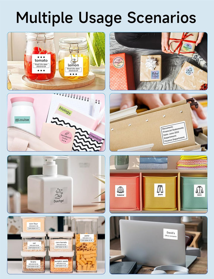 Phomemo M250 umožňuje tisknout extra široké štítky, což otevírá nové možnosti pro označování produktů, balíčků i domácích věcí. Ideální pro: