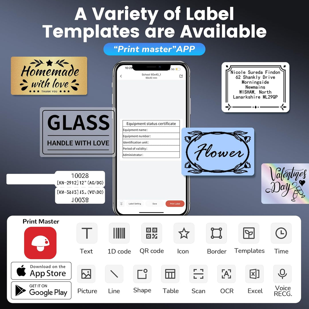 Stačí stáhnout bezplatný software Print Master a můžete ihned začít tisknout štítky z vašeho zařízení bez složité instalace.