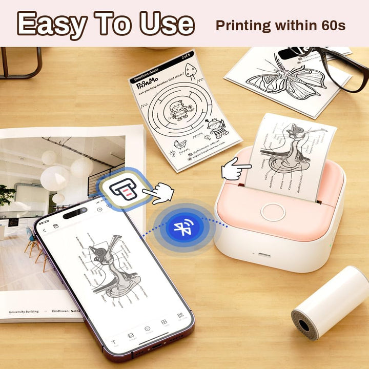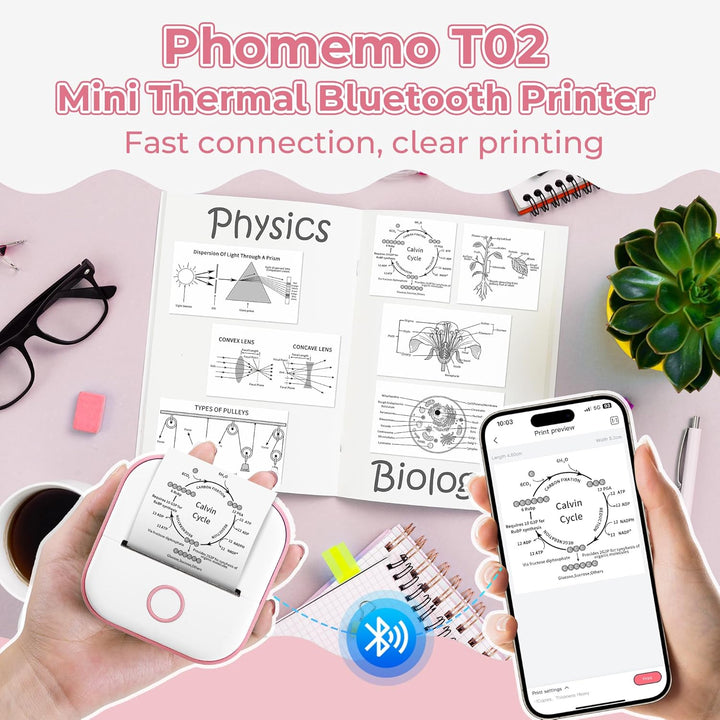 Phomemo T02 chytrá přenosná tiskárna | Tisk štítků, nálepek a obrázků - Růžová
