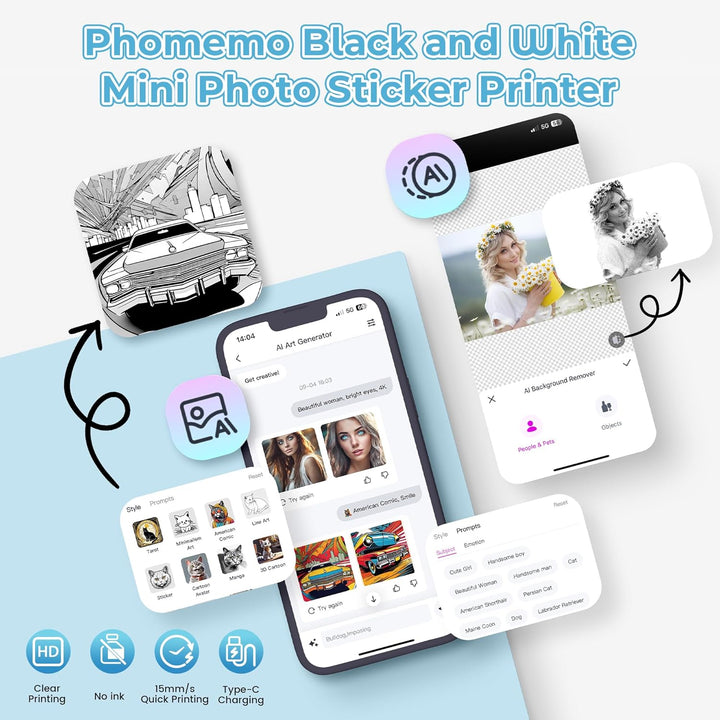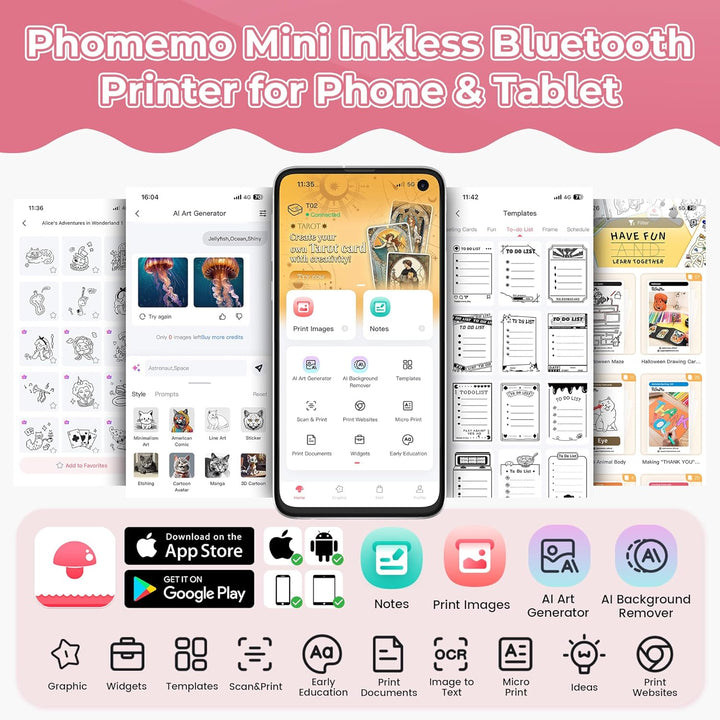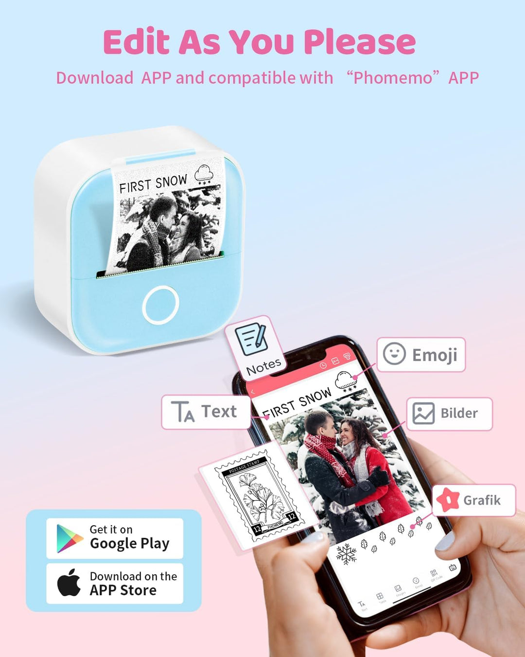 Spojení této dokonalé tiskárny a její bezplatné aplikace umožňuje jednoduché tisknutí různých formátů a šablon přímo z vašeho chytrého telefonu či tabletu. Vybrat si můžete z rozšířené kolekce obrázků, dostupné přímo v aplikaci nebo nahrát vlastní.
