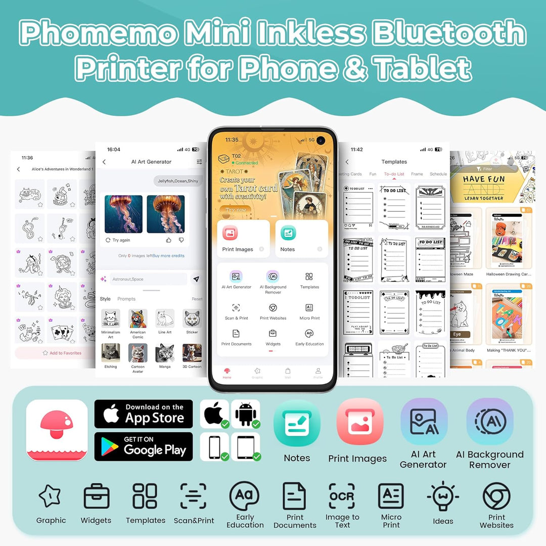 Ke správnému používání tiskárny Phomemo T02 je potřeba si nainstalovat aplikaci Phomemo ve Vašem chytrém mobilu, nebo tabletu a připojit tiskárnu pomocí Bluetooth.