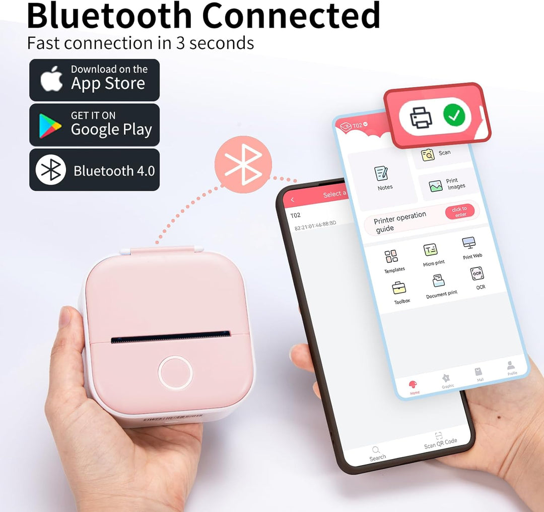 Phomemo T02 chytrá přenosná tiskárna | Tisk štítků, nálepek a obrázků, Růžová