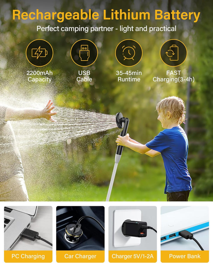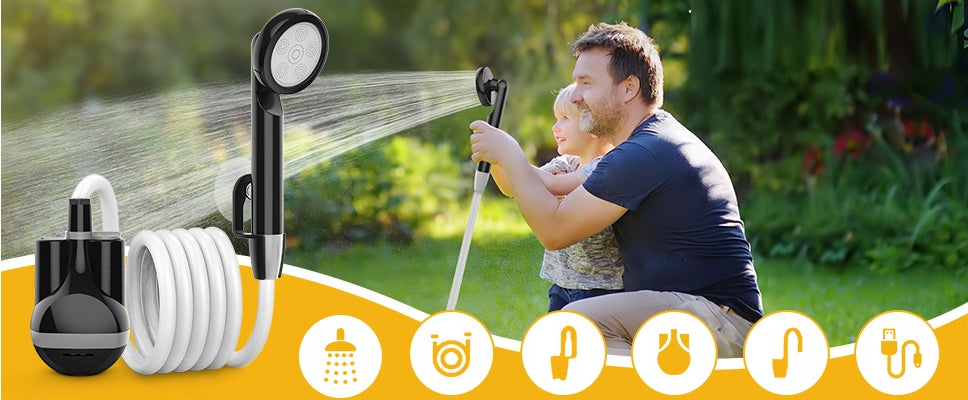 Zažijte komfort sprchování kdekoliv s naší přenosnou sprchou na kempování s elektrickou pumpou!