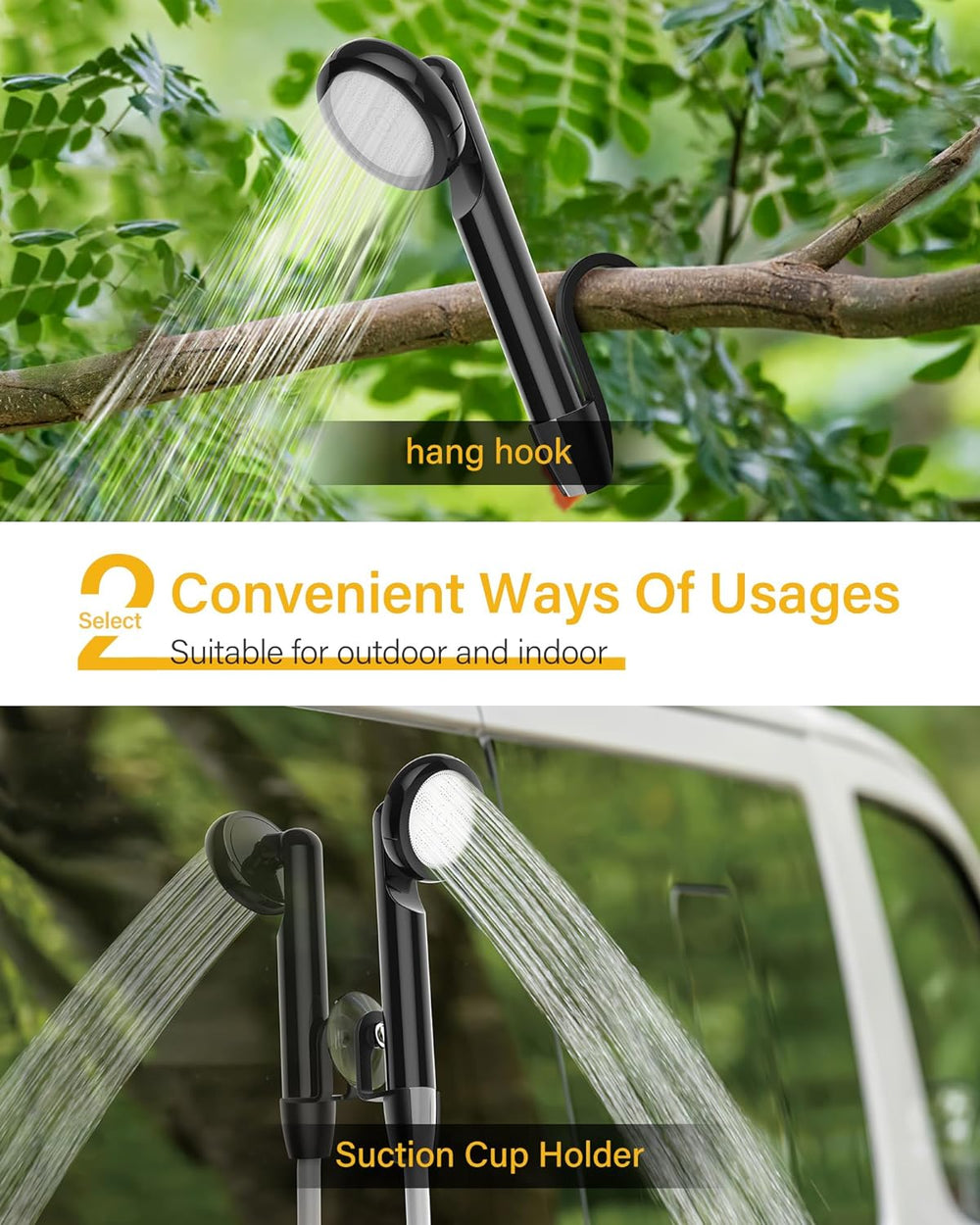 Univerzální použití: Mobilní sprcha je vybavena J-háčkem a přísavkami pro snadné zavěšení nebo upevnění bez nutnosti vrtání děr. S hadicí dlouhou 1,8 m je vhodná nejen pro venkovní aktivity jako je cestování, kempování či rybaření, ale také pro zalévání květin, mytí automobilů nebo koupání domácích mazlíčků.