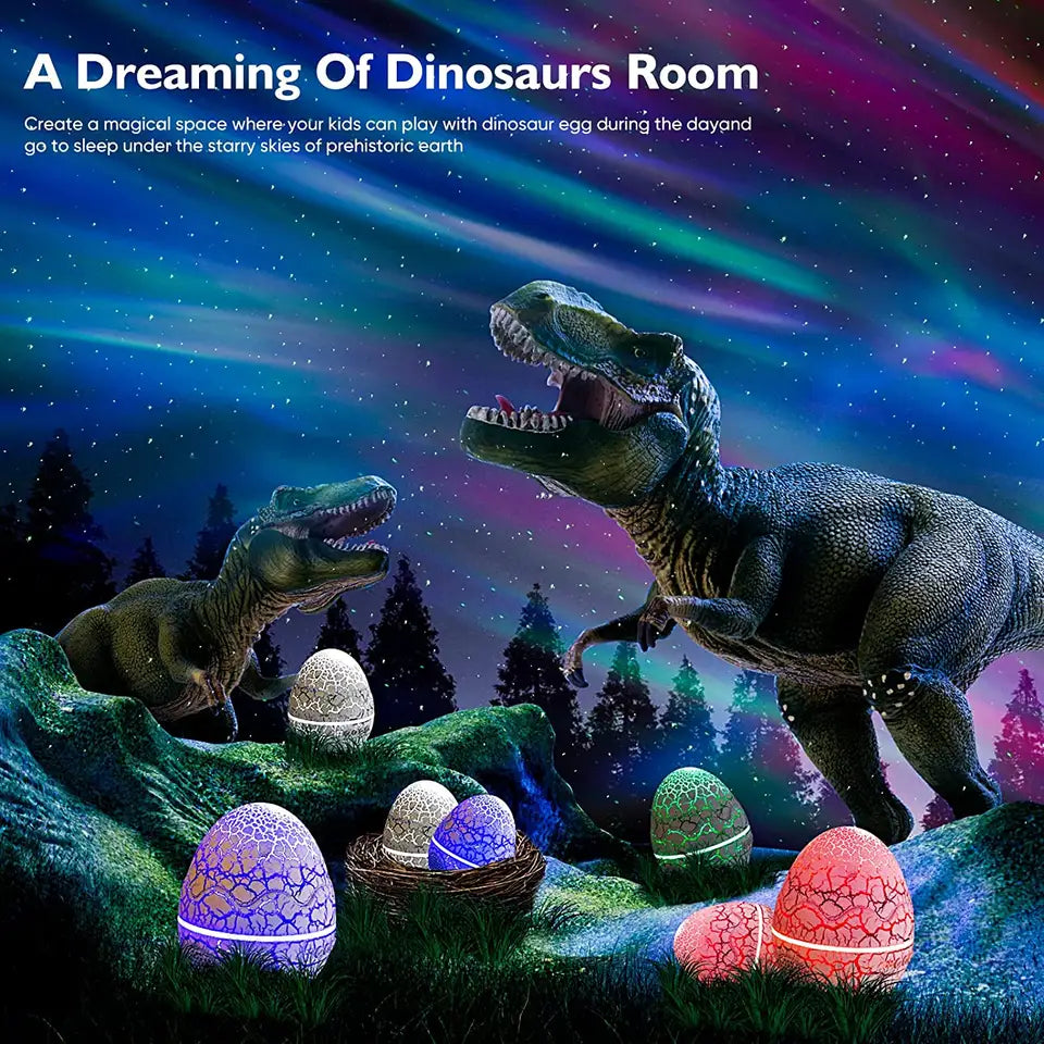 Proměňte svůj pokoj v kouzelný vesmír s originálním projektorem ve tvaru dinosauřího vejce. Tento stylový doplněk spojuje noční lampičku a projektor hvězdné oblohy do jednoho zařízení. Po sejmutí horní části se rozsvítí galaxie s mlhovinami, hvězdami a dechberoucími světelnými efekty, které navodí příjemnou atmosféru pro odpočinek, hraní nebo usínání. Skvělý dárek pro děti i dospělé milovníky vesmíru!