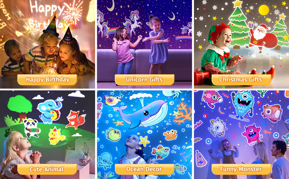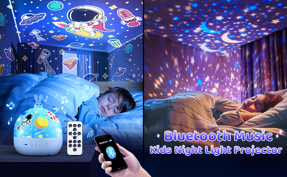 - Kouzelná projekce: Projektor nabízí nádherné motivy jednorožců, mořských víl, hvězd a dalších pohádkových prvků, které se promítají na strop a stěny dětského pokoje.