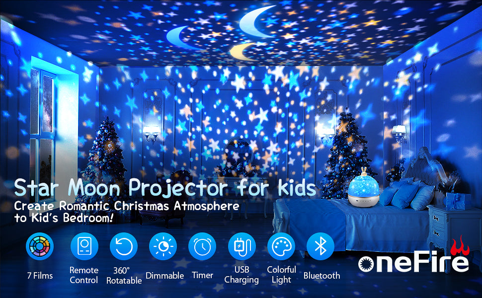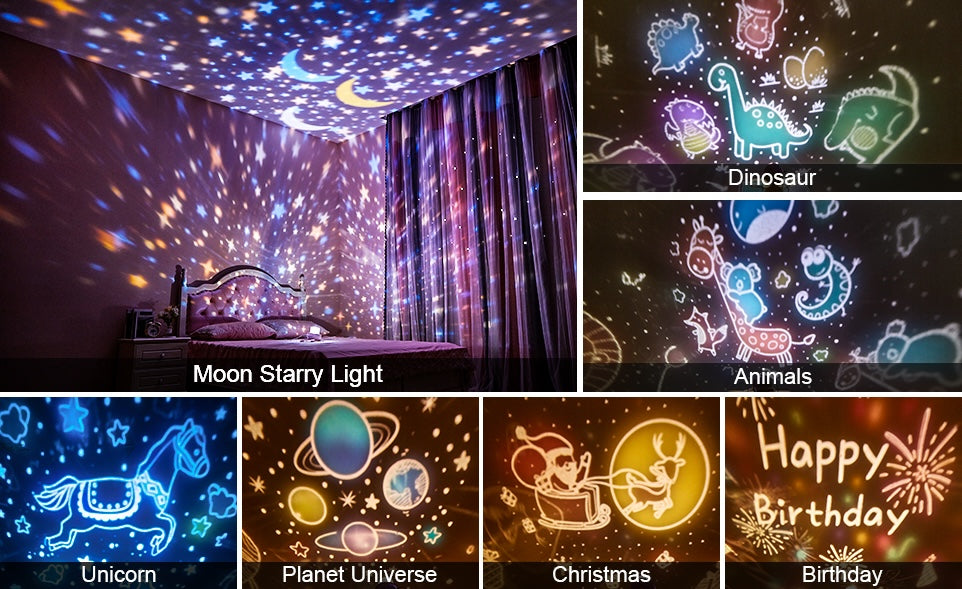 • Kouzelná projekce: Projektor nabízí nádherné motivy jednorožců, mořských víl, hvězd a dalších pohádkových prvků, které se promítají na strop a stěny dětského pokoje.