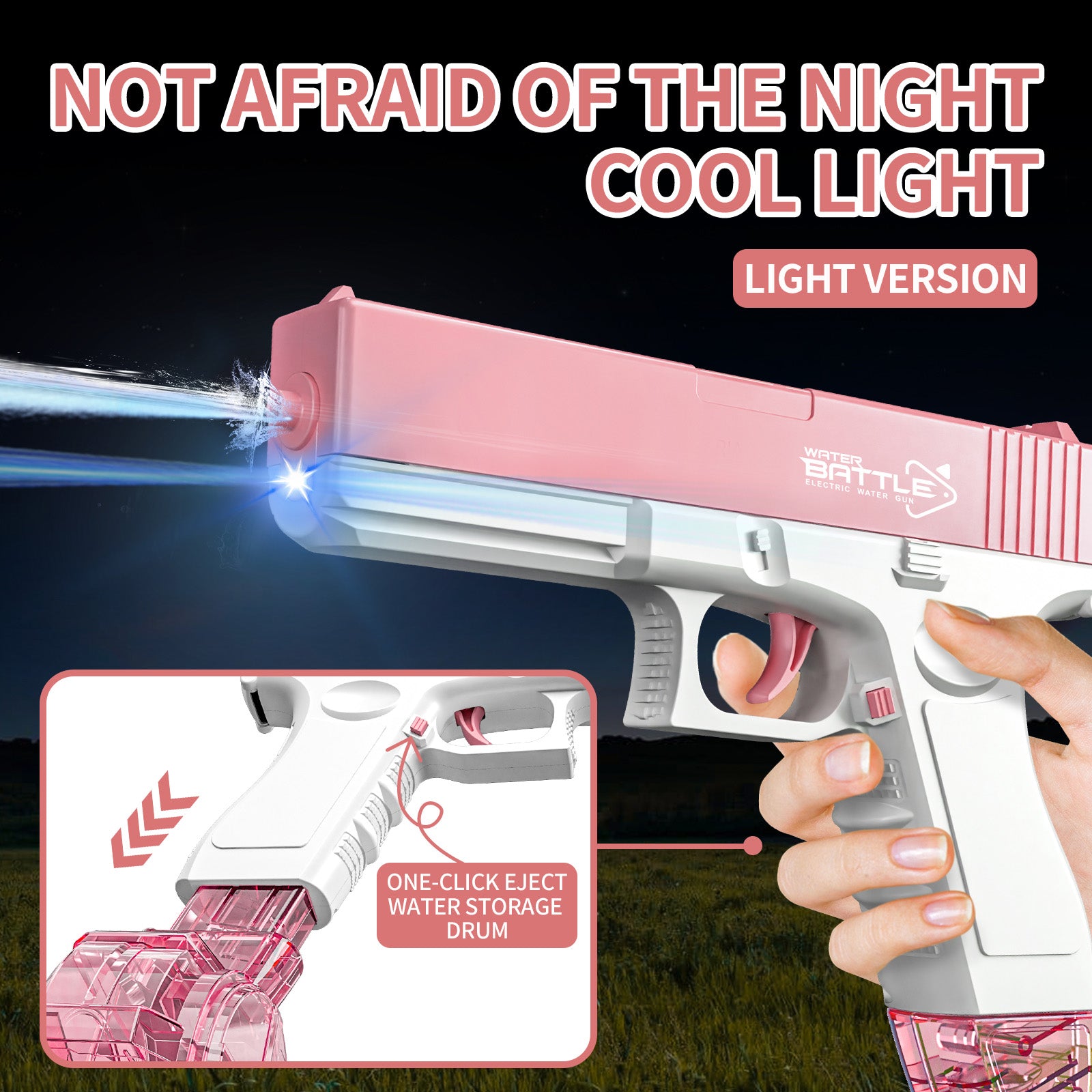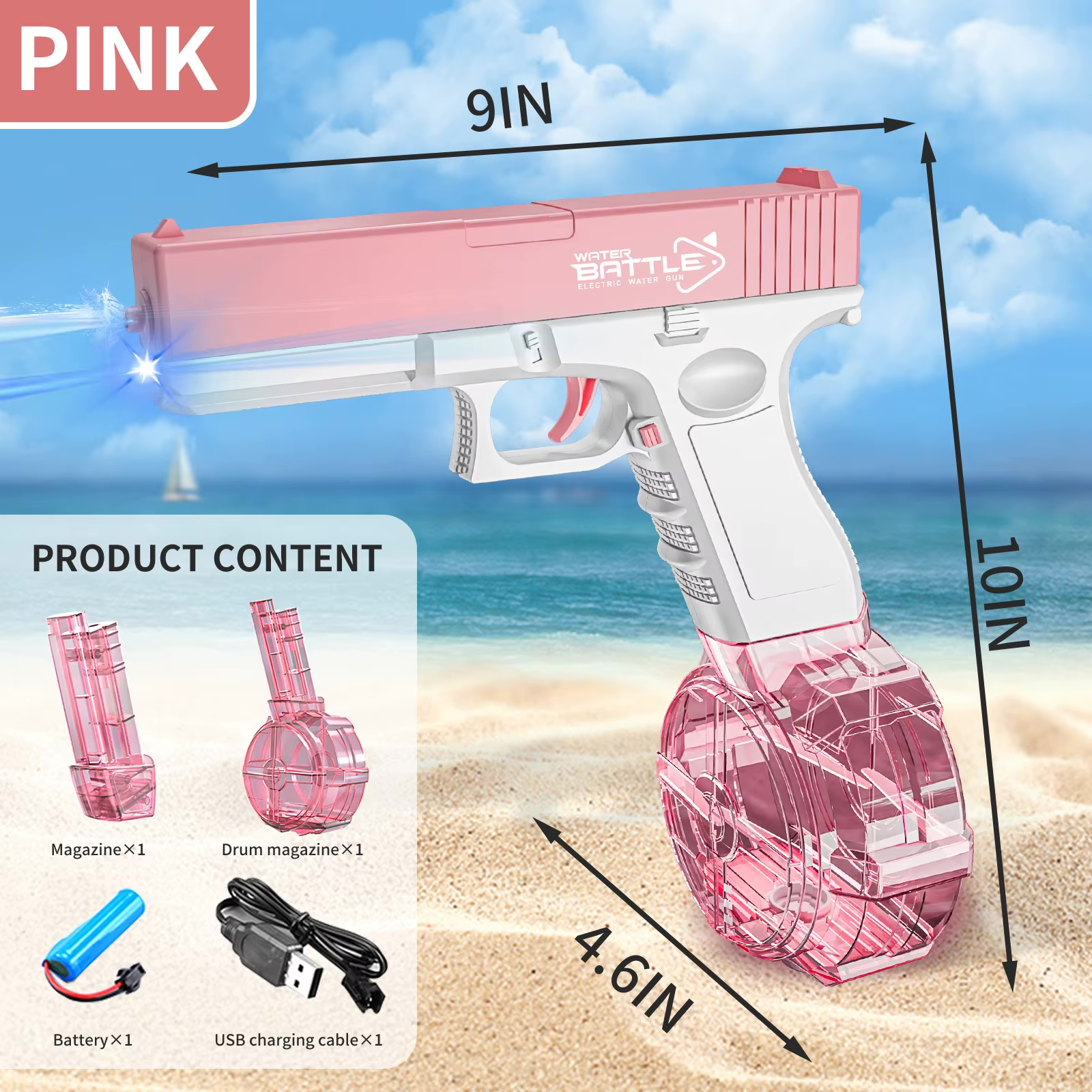 Tato vodní pistole je navržena ve tvaru Glock, což jí dodává moderní a realistický vzhled, který zaujme každého fanouška vodních bitev. Ergonomický design této pistole zajišťuje pohodlné držení a snadné ovládání, takže je ideální pro dlouhé hodiny letní zábavy.
