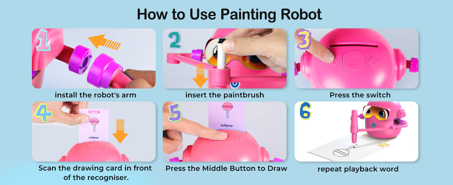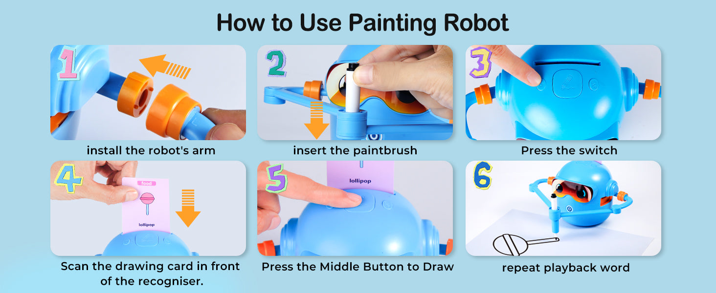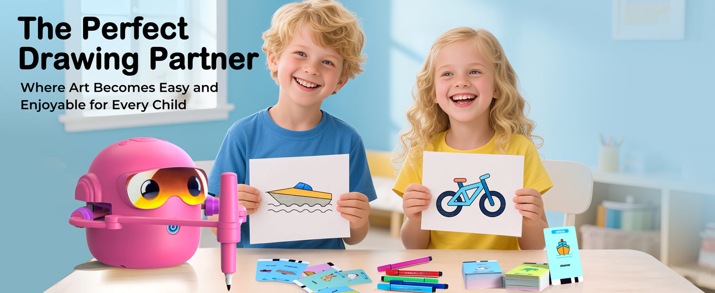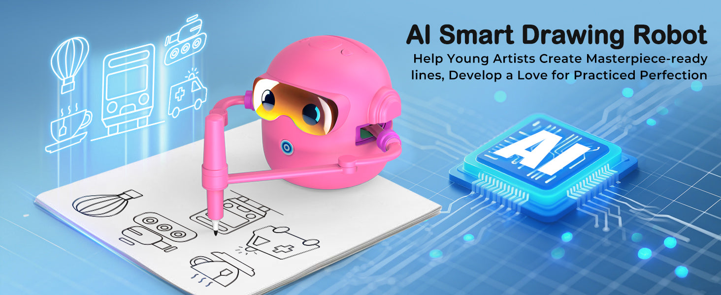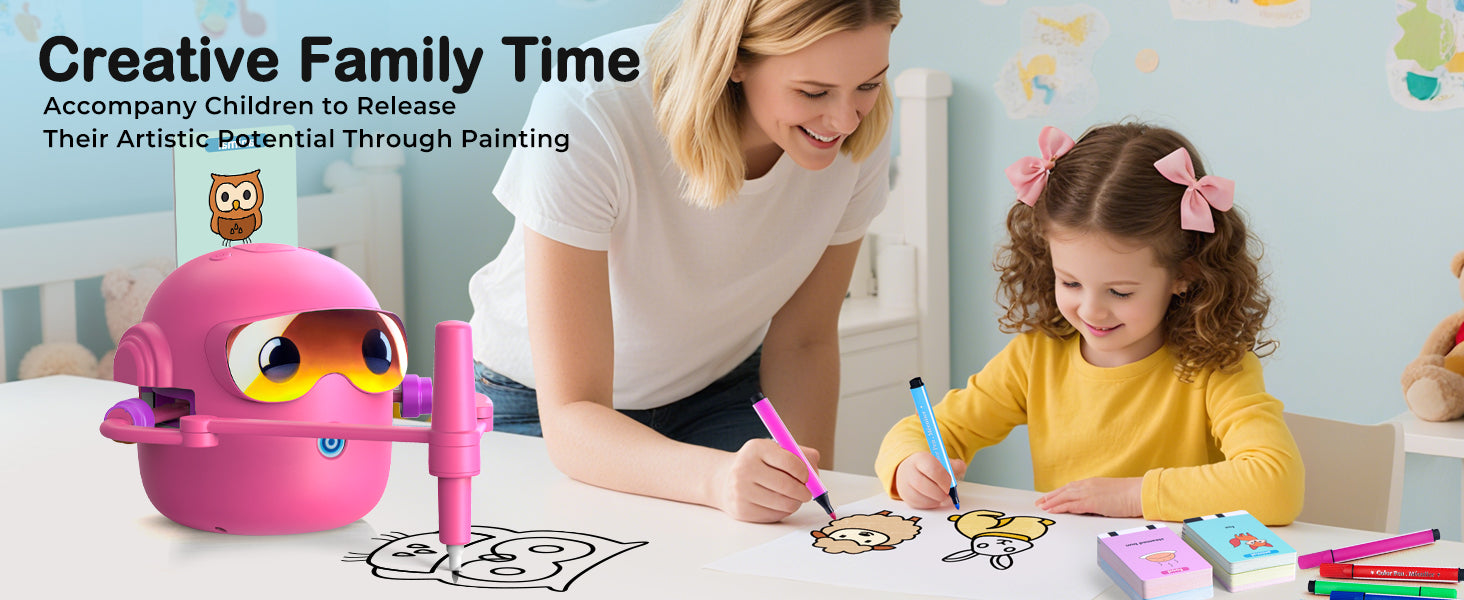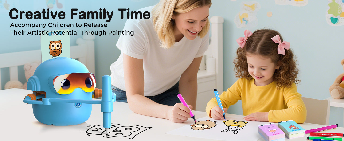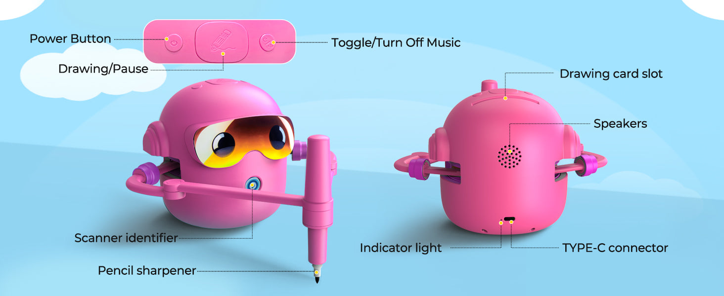 Robot není jen obyčejná kreslící pomůcka. Vestavěná hudba vytváří příjemnou atmosféru při tvoření a pomáhá dětem udržet pozornost. Kreslení se tak mění v zábavnou kreativní aktivitu, která podporuje koordinaci ruky a oka i soustředění.