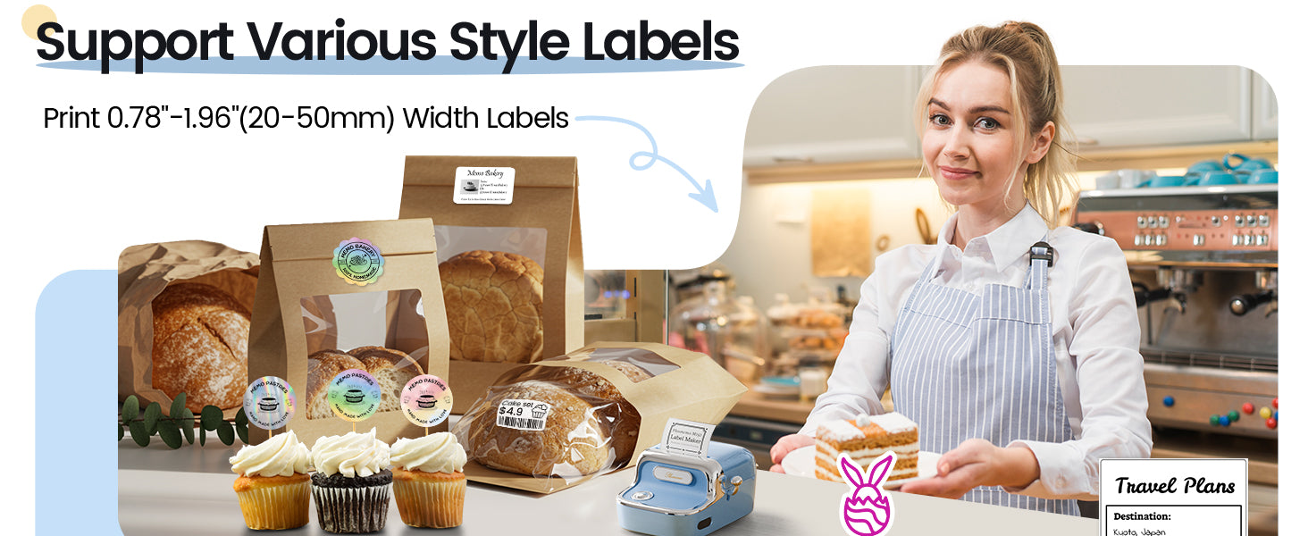 • Flexibilní šířka štítků (20–50 mm) – pro různé typy etiket od potravin po adresy