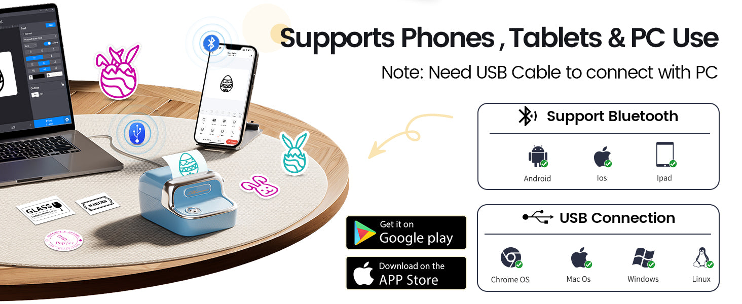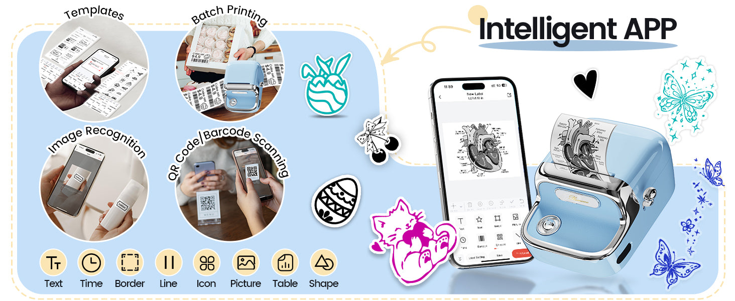 Ovládejte tiskárnu pohodlně přímo z mobilu – aplikace Print Master je zdarma dostupná pro iOS i Android. Nabízí jednoduché a rychlé vytváření štítků z textu, ikon, QR kódů, obrázků nebo hotových šablon – stačí pár klepnutí a tisknete!