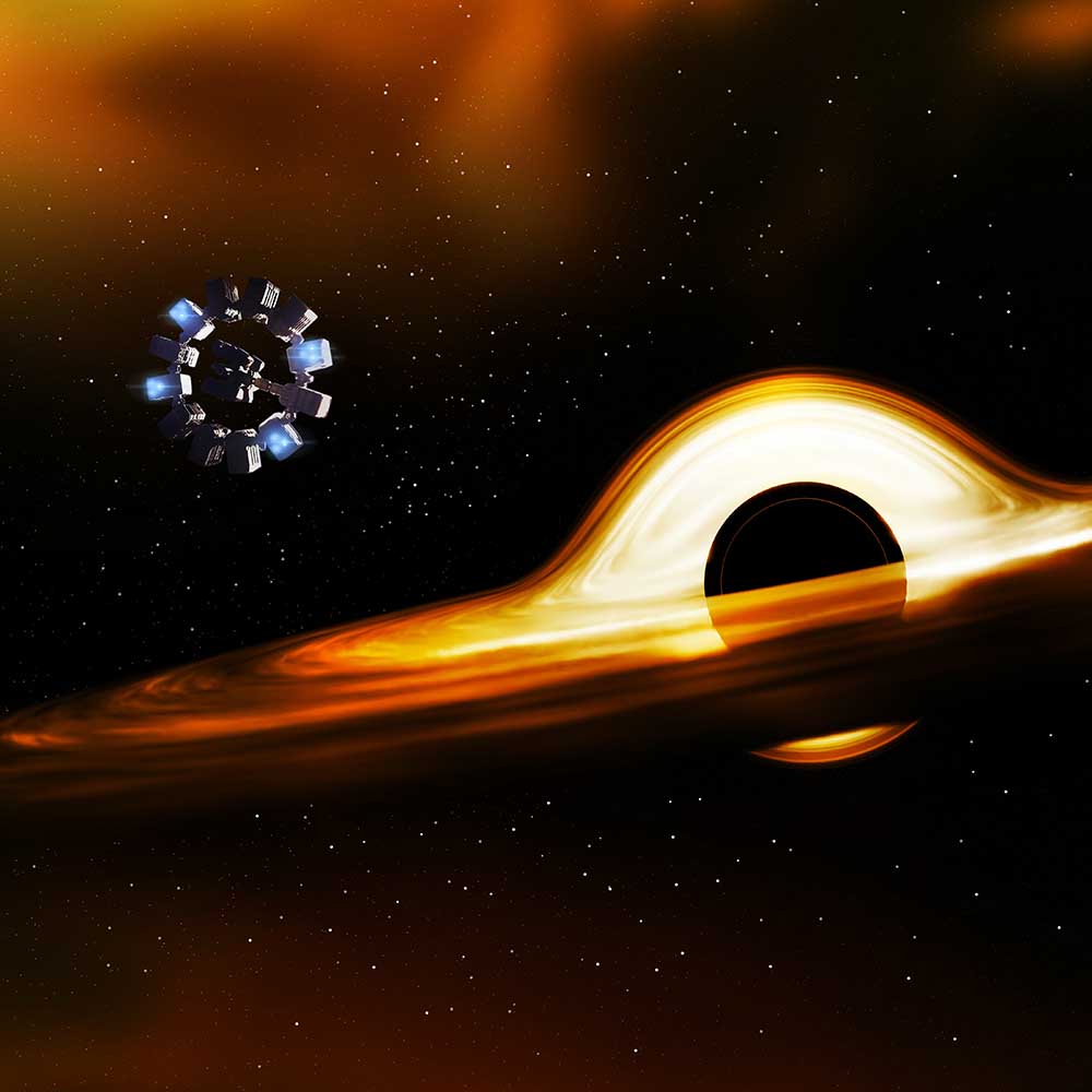 Součástí balení je snímek černé díry. Černá díra je objekt ve vesmíru, jehož gravitační síla je tak silná, že z ní nemůže uniknout ani světlo. Vzniká zhroucením hmoty do extrémně hustého bodu, kterému se říká singularita. Oblast kolem černé díry, odkud již nic nemůže uniknout, se nazývá horizont událostí. Černé díry hrají klíčovou roli v pochopení gravitačních jevů a evoluce vesmíru.