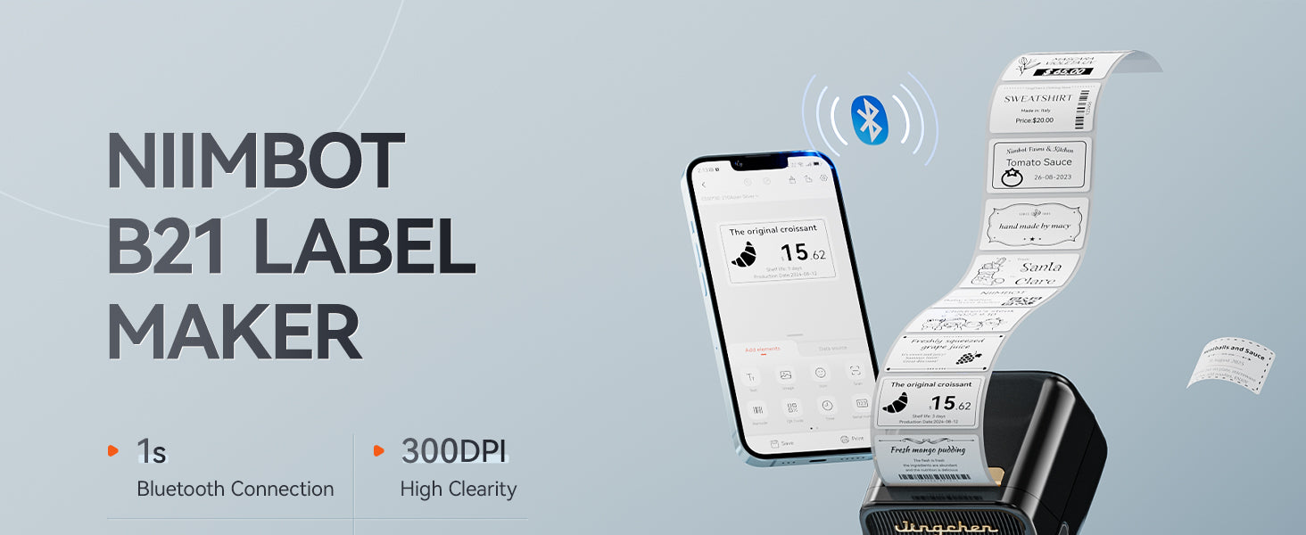 Tiskárna se snadno připojí přes Bluetooth k chytrým telefonům a tabletům s iOS či Android operačním systémem. Pro uživatele PC nebo Mac je k dispozici USB připojení. Ovládání je intuitivní díky bezplatné aplikaci NIIMBOT, která nabízí funkce jako skenování, rozpoznávání obrázků, dávkový tisk, sériové číslování, více než 20 fontů a více než 100 designových šablon.