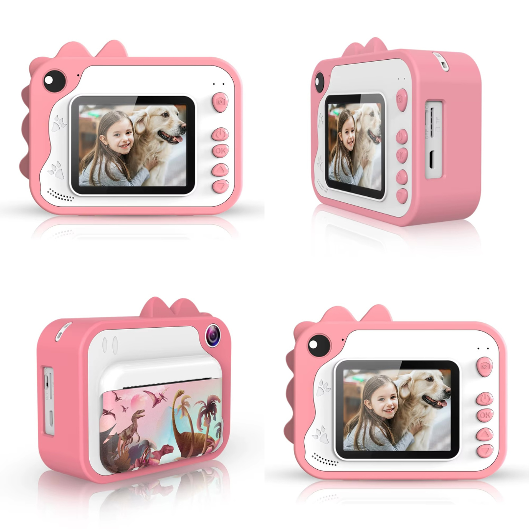 Uleway Dětský instantní fotoaparát s okamžitým tiskem | Motiv dinosaurů, růžová