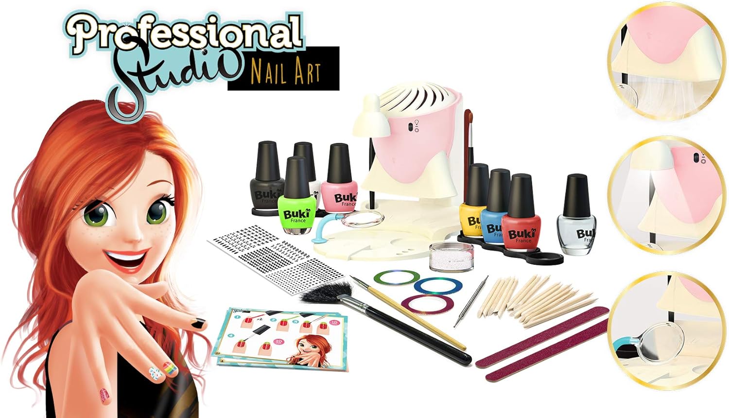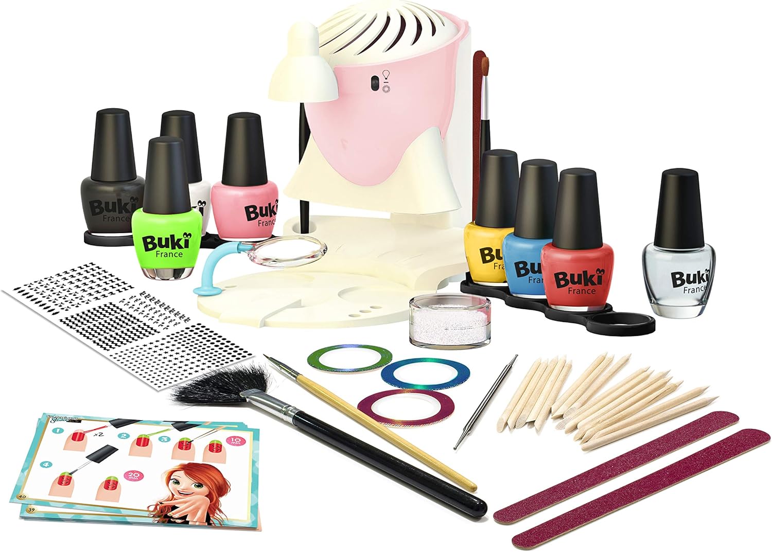 BUKI 5404 – Profesionální nehtové studio pro děti| 8 laků, UV sušička, zvětšovací lupa, světlo, 30 návrhů