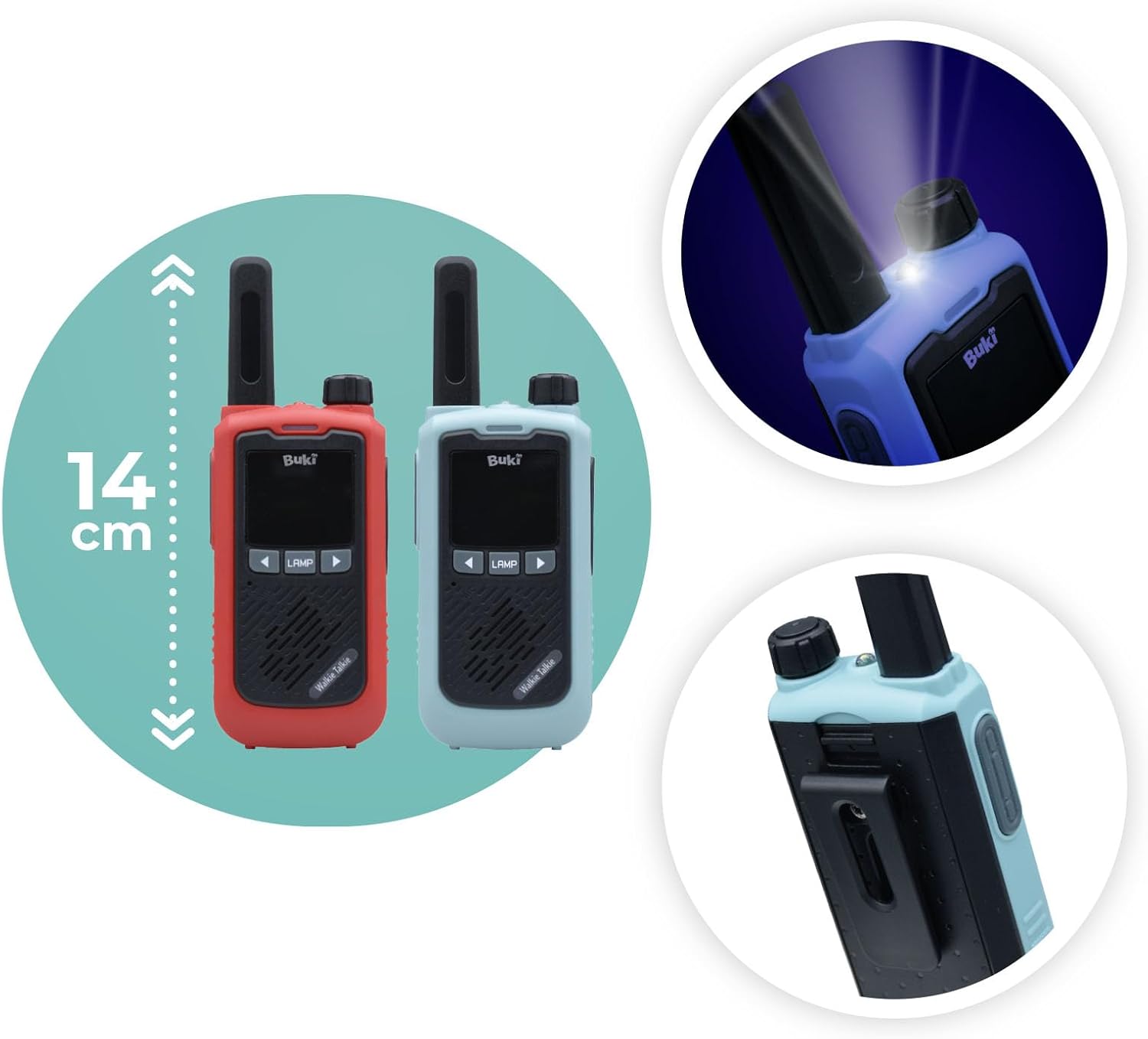 Vysílačky BUKI TW05 jsou ideálním parťákem pro dětská dobrodružství i rodinné výlety. Nabízejí dosah až 5 kilometrů, 16 komunikačních kanálů a kvalitní přenos zvuku díky vylepšenému mikrofonu a reproduktoru.