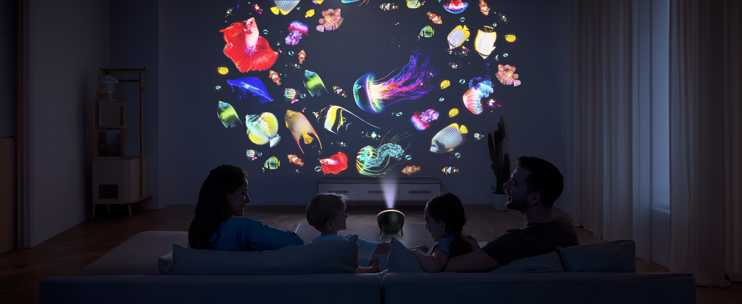 • 🎨 6 režimů ambientního osvětlení – proměňte projektor v designovou lampu s atmosférou na míru.
