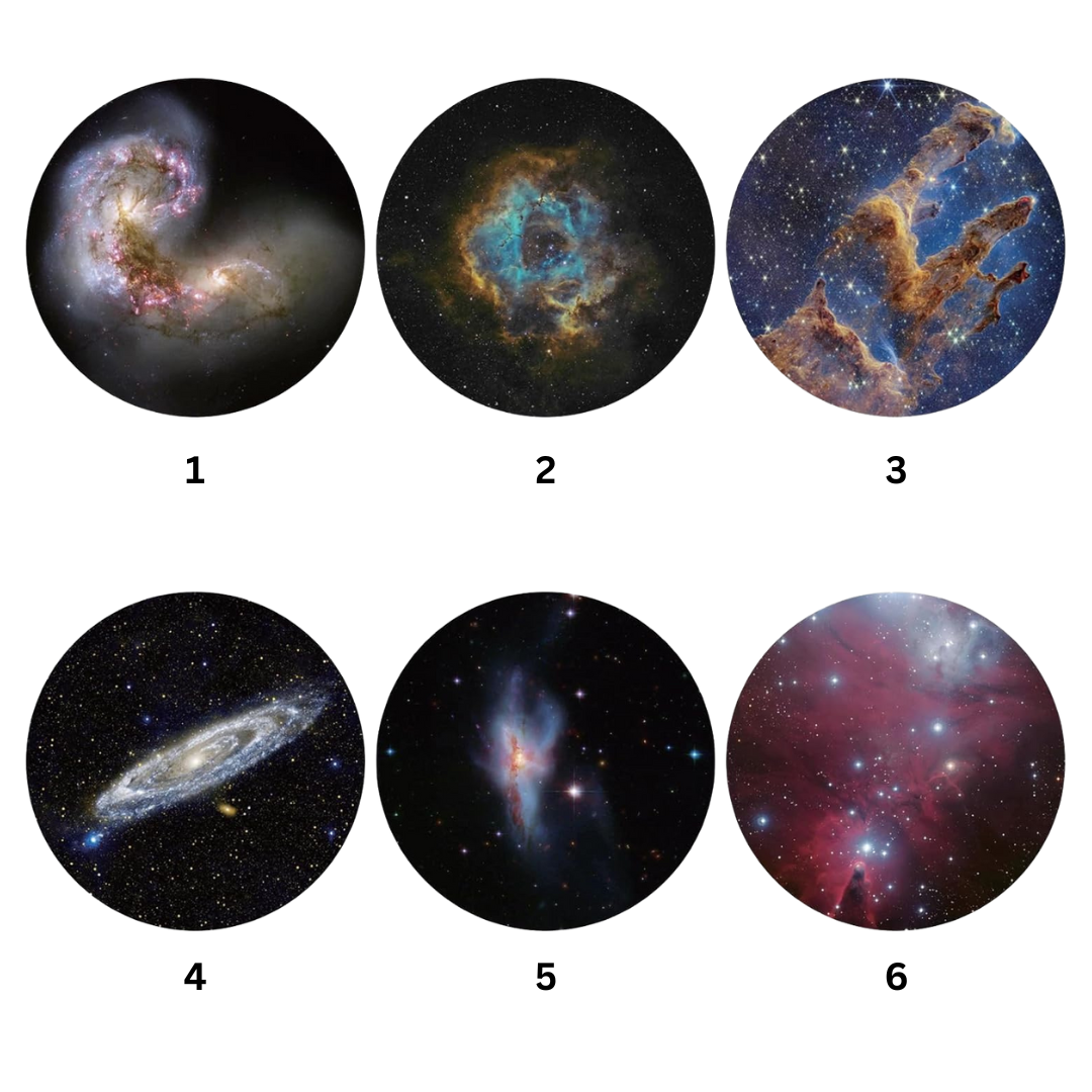 Objevte kouzlo vesmíru s desátou limitovanou edicí sady kazet pro projektor galaxie. Tato speciální kolekce přináší šest jedinečných snímků, které vás zavedou od majestátního Saturnu a záhadné černé díry až po poetický příběh Měsíce. Nechybí ani fascinující pohled na dorůstající Měsíc a dvě úchvatné noční oblohy – arktická a antarktická.