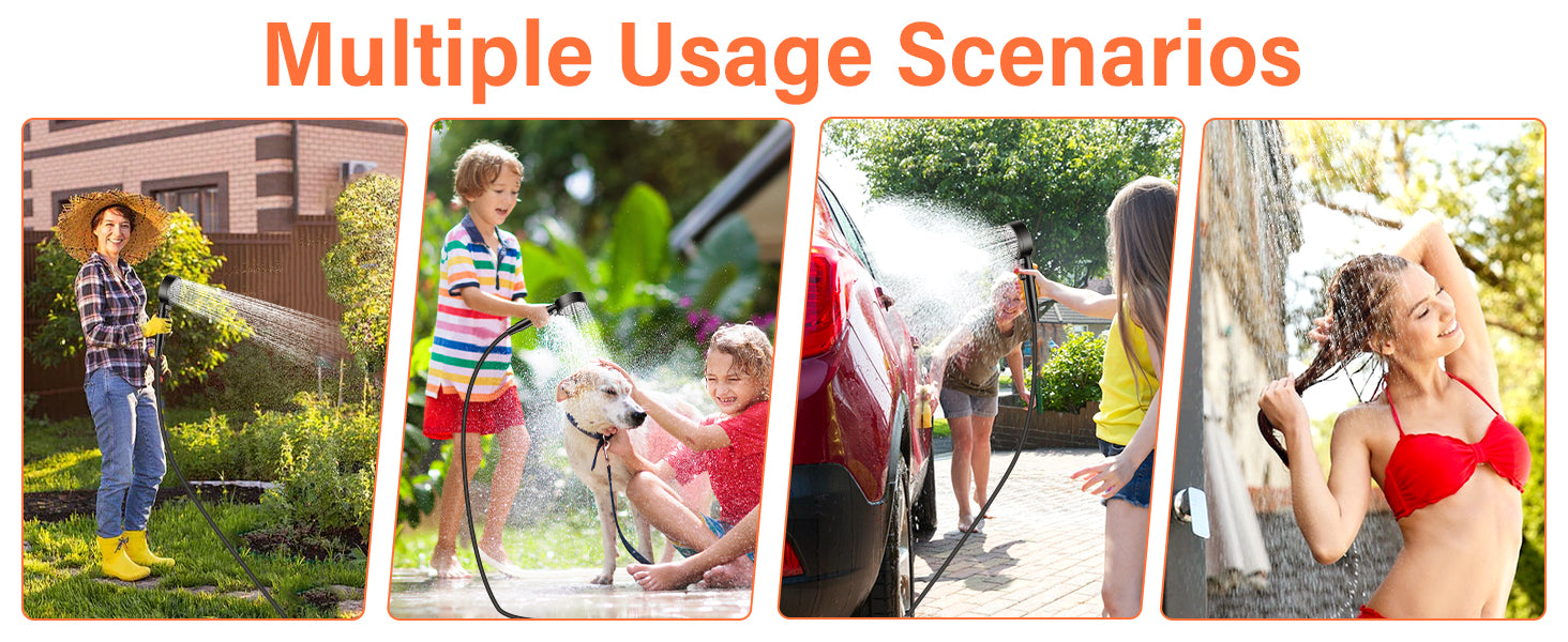 Tato sprcha není jen pro klasické sprchování – její univerzální využití oceníte v mnoha situacích. Skvěle poslouží při mytí domácích mazlíčků, zalévání rostlin, mytí auta, venkovním sprchování po koupání v bazénu, ale i při úklidu domácnosti nebo čištění zahradního nářadí. Díky více režimům proudu vody si jednoduše přizpůsobíte výkon podle aktuálních potřeb.